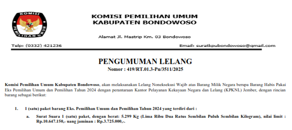 Panitia Lelang Komisi Pemilihan Umum (KPU) Kabupaten Bondowoso