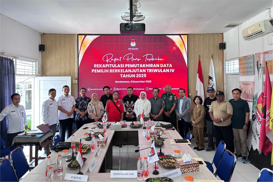 Bondowoso, [8/12/2025] – Komisi Pemilihan Umum (KPU) Kabupaten Bondowoso telah sukses menggelar Rapat Pleno Terbuka Rekapitulasi Pemutakhiran Data Pemilih Berkelanjutan (PDPB) Triwulan IV Tahun 2025 di Aula Kantor KPU Bondowoso pada Senin, 8 Desember 2025. Pleno ini bertujuan untuk memutakhirkan dan menetapkan jumlah data pemilih terkini di Kabupaten Bondowoso sebagai persiapan menghadapi agenda elektoral yang akan datang.