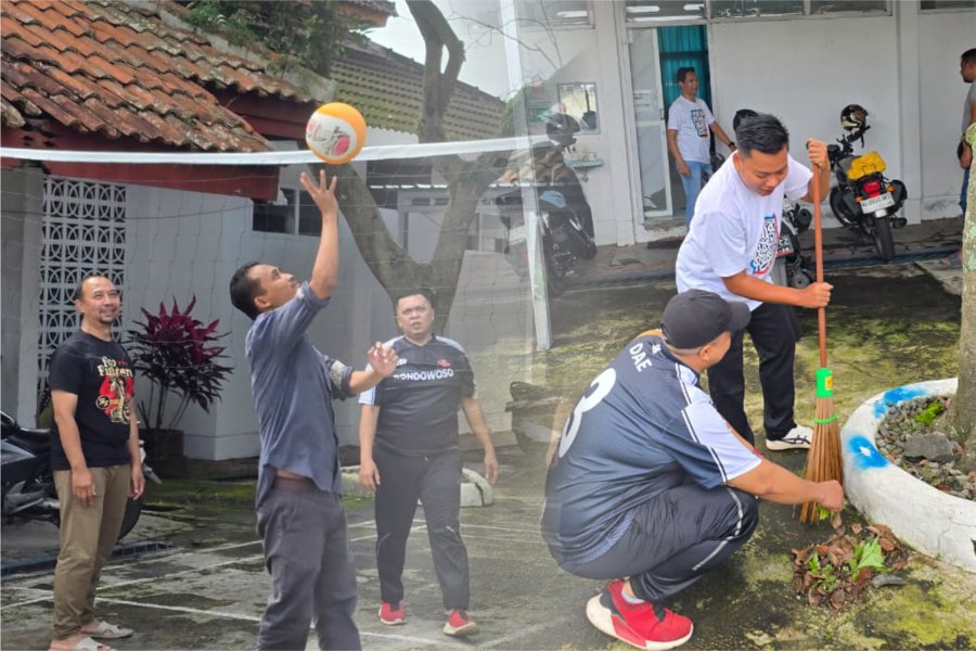 Usai kerja bakti, kegiatan dilanjutkan dengan Bina Jasmani melalui permainan volitik atau voli plastik. Lapangan sederhana di area kantor dimanfaatkan untuk bermain bersama dalam suasana ringan dan penuh keakraban. Tawa dan canda sesekali terdengar di sela permainan, menambah semarak kegiatan dan menciptakan suasana yang cair.