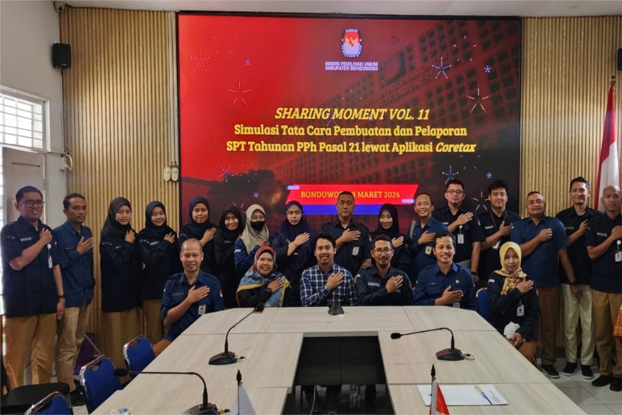 Bondowoso, 3 Maret 2026 – Dalam rangka meningkatkan pemahaman dan kepatuhan perpajakan pegawai, Komisi Pemilihan Umum Kabupaten Bondowoso menyelenggarakan kegiatan sharing momen bertajuk Simulasi Tata Cara Pembuatan dan Pelaporan SPT Tahunan PPh Pasal 21 melalui Aplikasi Cortex. Kegiatan ini dilaksanakan di lingkungan kantor KPU Kabupaten Bondowoso dan diikuti oleh jajaran pegawai sekretariat.