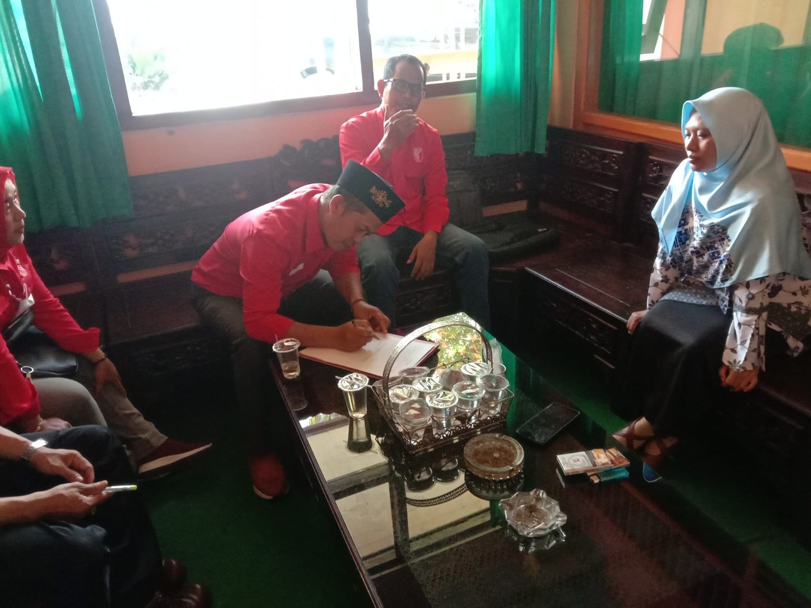 Saat berkunjung ke KPU Bondowoso, Fathullah didampingi Sunaryadi(Wakil Ketua), Mohammad Erfan (Sekretaris) dan Linda (Bendahara), disambut langsung oleh Ketua KPU Junaidi, Heniwati (Divisi Teknis Penyelenggara) didampingi Plt. Kasubbag Teknis dan Hupmas, Fahrurozhi Mashuri. (Dag#)