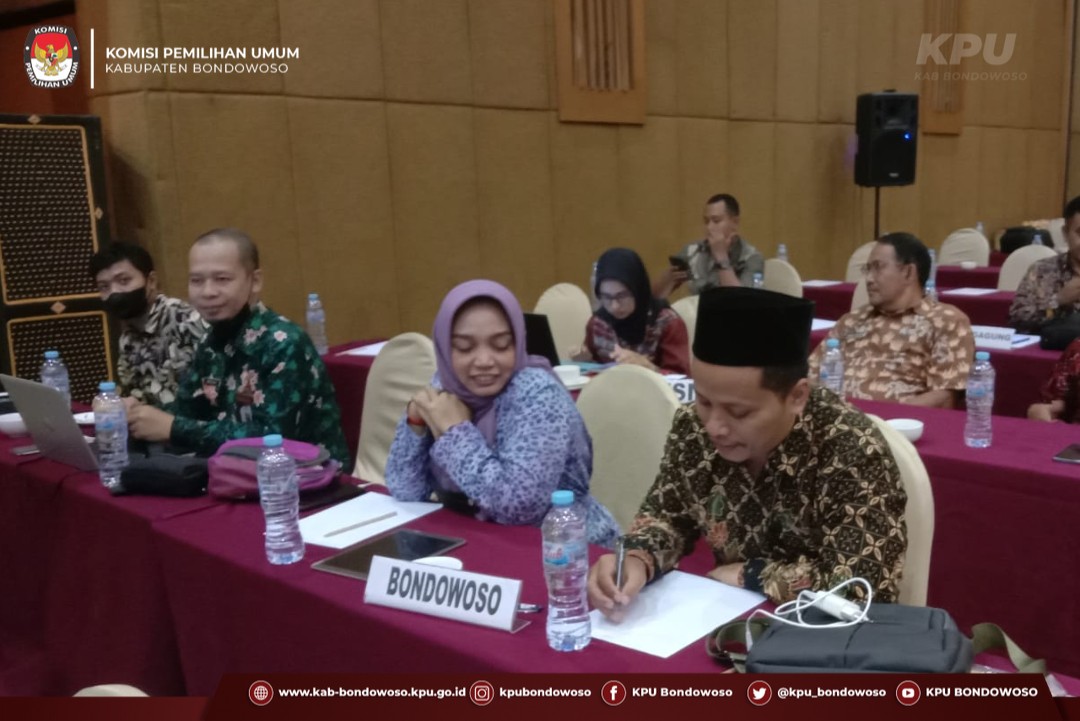Surabaya - Komisi Pemilihan Umum Kabupaten Bondowoso ikuti Bimbingan Teknis Tahapan, Program dan Jadwal Kegiatan Pembentukan PPK dan PPS Pemilu Tahun 2024 KPU Provinsi Jawa Timur bersama KPU Kabupaten/Kota Se-Jawa Timur.
