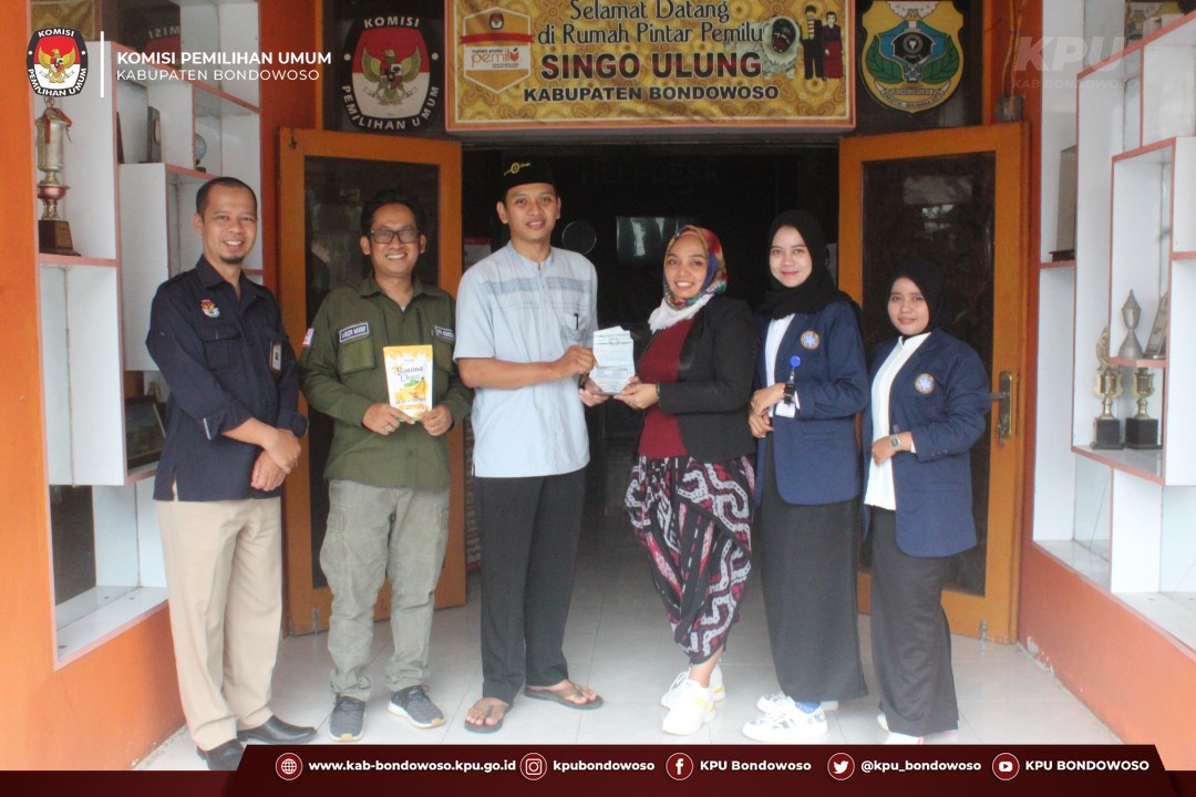 Bondowoso, Selasa 15 November 2022. Dua Orang mahasiswi UNUJA (Universitas Nurul Jadid) – Paiton, Probolinggo yang selama 41 hari ini mengadakan Praktek Pengalaman Lapangan (PPL) di KPU Kabupaten Bondowoso diserahkan kembali ke Kampus mereka dalam acara perpisahan dan pelepasan mahasiswi PPL di Ruang Tamu Komisioner KPU Kabupaten Bondowoso. Hadir dalam penyerahan kembali mahasiswi UNUJA yakni Kepala Program Studi Achmad Febrianto, dan dari pihak KPU Bondowoso, Divisi Sosdiklih Parmas dan SDM, Sunfi Fahlawati, Divisi Hukum dan Pengawasan, Amirudin Makruf, Sekretaris KPU Kabupaten Bondowoso, Toidin serta Kasubbag Hukum dan SDM, Fahrurozhi Mashuri. Febrianto mengatakan “ Mohon maaf apabila selama pelaksanaan Praktek Pengalaman Lapangan Mahasisiwi UNUJA baik yang sengaja maupun tidak sengaja, serta masih jauh dari yang harapkan, semata-mata ini untuk menambah pengalaman dan penilaian mahasiswi kami di semester akhir. Menurut fifi panggilan akrabnya mengatakan “ Saya selaku Divisi yang mengampu mengucapkan banyak terima kasih kepada Pihak UNUJA yang telah mempercayakan mahasiswinya untuk melaksanakan magang di KPU Kabupaten Bondowoso, Kami juga meberikan ruang yang seluas-luasnya kepada mahasiswi magang untuk belajar secara langsung sesuai dengan disiplin ilmunya”. “ Harapan saya, ilmu yang diperoleh selama melaksanakan praktek lapangan di KPU Kabupaten Bondowoso nantinya membawa manfaat dan berguna untuk adik-adik mahasiswi” imbuhnya. Perpisahan dan pelepasan diakhiri dengan penyerahan cendramata dan berphoto bersama. /Dav