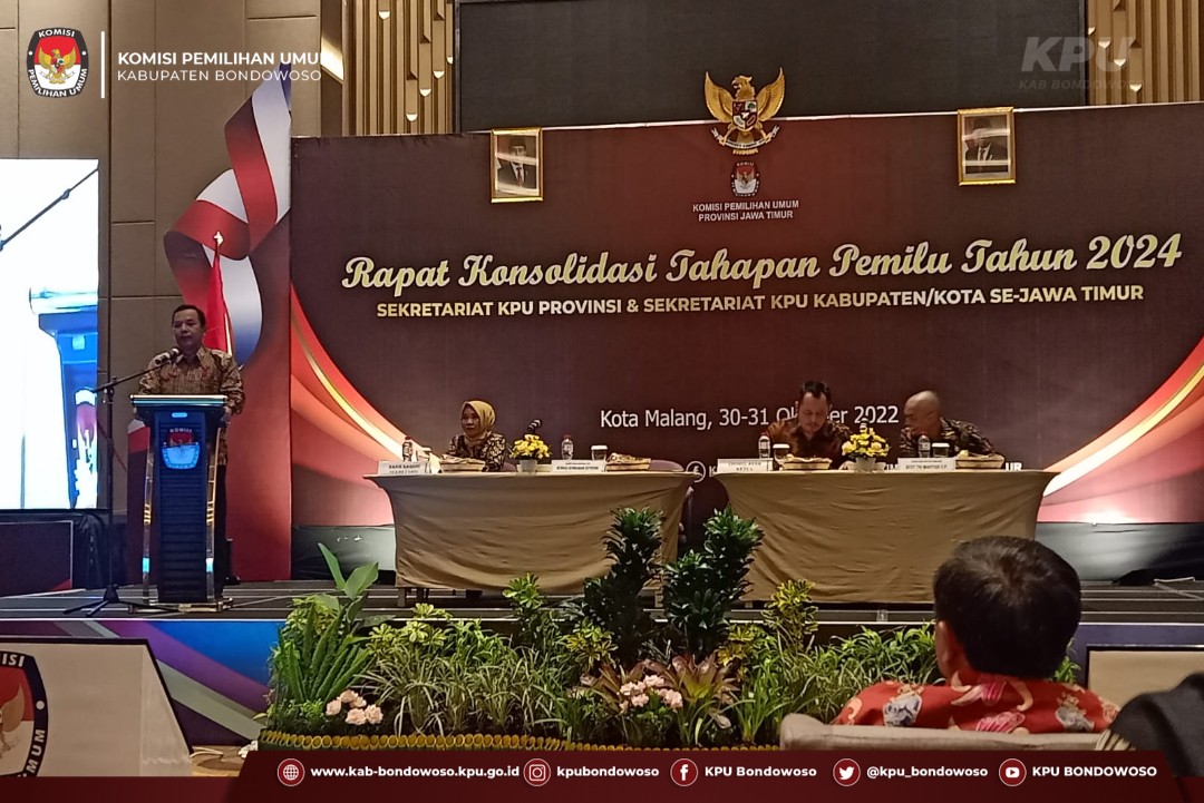 Malang - Komisi Pemilihan Umum (KPU) Kabupaten Bondowoso menghadiri acara Focus Group Discussion (FGD) Pemetaan Tempat Pemungutan Suara (TPS) Khusus Pemilu Tahun 2024, Minggu (30/10/22). Kegiatan FGD dilaksanakan di Hotel Grand Mercure kota Malang. Kegiatan tersebut diikuti oleh Divisi Perencanaan, Data dan Informasi dan operator Sidalih se-Jawa Timur. Hadir dalam acara Ali Mushofa Divisi Perencanaan, Data dan Informasi KPU Kabupaten Bondowoso berserta Operator Hairul Umam. Kegiatan dibuka oleh Chairul Anam Ketua KPU Provinsi Jawa Timur. Dalam kegiatan tersebut Anam menyampaikan sebagai penyelenggara pemilu agar dapat memahami Peraturan Komisi Pemilihan Umum (PKPU) nomor 7 tahun 2022 tentang Penyusunan Daftar Pemilih Dalam Penyelenggaraan Pemilihan Umum dan Sistem Informasi Data Pemilih. Selain itu anam menyampaikan agar KPU Kabupaten/Kota dapat melakukan pemetaan TPS Khusus secara akurat dan efektif. Nurul amalia Divisi Data dan Informasi dalam sambutanya menyampaikan terkait kegiatan yang akan dilaksanakan dalam kegiatan FGD. Dalam kegiatan yang sama, Miftakur Rozaq Divisi Perencanaan dan Logistik menjelaskan pentingnya pemutakhiran daftar pemilih dan sistem informasi daftar pemilih diantaranya ialah sebagai penjaminan hak konstitusi warga negara untuk pemilih, terkait perencanaan penempatan tps, dan pencetakan surat suara dan hal teknis lainya. "Saya berharap agar Divisi perencanaan data dan informasi dapat melakukan perencanaan dengan baik dan matang". Ungkapnya. Sambutan terakhir Rochani Divisi SDM dan Penelitian dan Pengembangan. Dalam sambutanya Rochani menyampaikan pentingnya petugas pantarlih yang akan bertugas dalam melakukan pemutakhiran daftar pemilih di KPU Kabupaten/Kota. Dalam hal ini rochani menekankan agar petugas pantarlih adalah SDM yang kompenten dibidangnya sehingga pemutakhiran data berjalan dengan akurat. (UM)