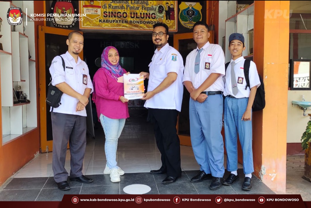 Bondowoso (10/10/2022)_Komisi Pemilihan Umum (KPU) Kabupaten Bondowoso kembali menerima siswa magang, kali ini berasal dari siswa SMKN 1 Bondowoso. Pelaksanaan magang biasanya dilaksanakan oleh siswa-siswi sekolah sebagai sarana pembelajaran awal di dalam dunia kerja. Untuk memfalitasi hal tersebut, KPU Kabupaten Bondowoso sebagai salah satu instansi pemerintah turut berperan serta dalam kegiatan magang yang dilaksanakan oleh lembaga-lembaga pendidikan. Menurut Divisi Sosdiklih, Parmas dan SDM, Sunfi Fahlawati bahwa kegiatan magang ini sebagai tindak lanjut Permohonan dari SMK Negeri 1 Bondowoso yang sebelumnya sempat bersurat ke KPU Kabupaten Bondowoso. ‘Hari ini kita menerima siswa magang SMKN 1 Bondowoso setelah kemarin melaksanakan silaturahmi ke Kepala Sekolahnya untuk penyamaan persepsi, sehingga hari ini adik-adik diantar untuk magang di KPU, harapan saya siswa-siswa magang ini bisa cukup membantu kegiatan di KPU Kabupaten Bondowoso, dan pihak SMK juga dalam hal ini diuntungkan karena dapat tempat pelaksanaan magang” ujarnya. Kegiatan magang akan dilaksanakan di KPU Kabupaten Bondowoso selama enam bulan mulai 10 oktober 2022 sampai 10 April 2023. Banyak hal yang disampaikan oleh Ketua dan Komisioner KPU Bondowoso pada awal penerimaan peserta magang, mulai dari menjaga nama baik KPU Kabupaten Bondowoso, harus disiplin dalam kegiatan magang, serta jangan malu dan ragu unuk menanyakan hal-hal yang dibutuhkan sepanjang sesuai dengan tugas pokok.(Jie)