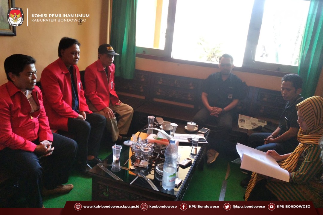 Bondowoso (04/08/2022) – Rombongan Pengurus Partai Demokrasi Rakyat Indonesia (PDRI) melakukan kunjungan ke Helpdesk Pendaftaran, Verifikasi, dan Penetapan Partai Politik KPU Kabupaten Bondowoso, Kamis (04/08/2022). Rombongan Pengurus PDRI Bondowoso dipimpin secara langsung oleh Ketua PDRI Kabupaten Bondowoso, Imam R, didampingi oleh Sekretaris dan Bendahara PDRI Kabupaten Bondowoso. Rombongan diterima oleh petugas helpdesk yang terdiri dari Koordinator dan Anggota Tim Helpdesk yang bertugas didampingi oleh Sekretaris Helpdesk. Selanjutnya rombongan dipersilahkan untuk mengisi buku tamu dan menyampaikan maksud dan tujuan untuk hadir ke Helpdesk Pendaftaran, Verifikasi dan Penetapan Partai Politik KPU Kabupaten Bondowoso. Ketua PDRI, Imam, menyampaikan bahwa maksud kedatangannya dimaksudkan untuk menyerahkan dokumen kepengurusan dan beberapa dokumen lainnya, seperti alamat kantor, SK Kemenkumham, dan beberapa dokumen lainnya. Selain itu, Imam juga menanyakan beberapa hal terkait dengan proses pendaftaran, verifikasi dan penetapan partai politik yang saat ini sedang berjalan. Ikut hadir menerima kunjungan dari pengurus PDRI adalah Anggota KPU Kabupaten Bondowoso, Divisi Teknis Penyelenggaraan Pemilu dan Anggota KPU Kabupaten Bondowoso Divisi Hukum dan Pengawasan. Anggota KPU Kabupaten Bondowoso, Heniwati, menyampaikan beberapa hal atas pertanyaan dari pengurus PDRI. (mipa)