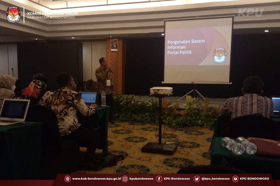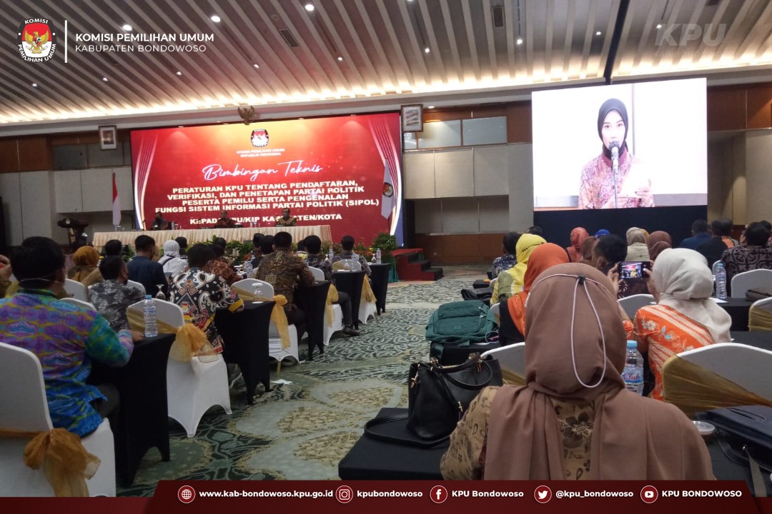 Hadir sebagai peserta dari KPU Kabupaten Bondowoso adalah Heniwati (Anggota KPU Bondowoso Divisi Teknis Penyelenggaraan Pemilu), Ali Mushoffa (Anggota KPU Bondowoso Divisi Perencanaan, Data dan Informasi), Moh Ilyas PA (Kasubbag Tekmas), dan Moh Dafid (Staf Subbag Tekmas). Kegiatan bimbingan teknis dilaksanakan dalam rangka penyamaan persepsi dan memberikan pemahaman regulasi dan kebijakan tentang pendaftaran, verifikasi, dan penetapan partai politik peserta pemilu serta pengenalan Sistem. Informasi Partai Politik (Sipol).