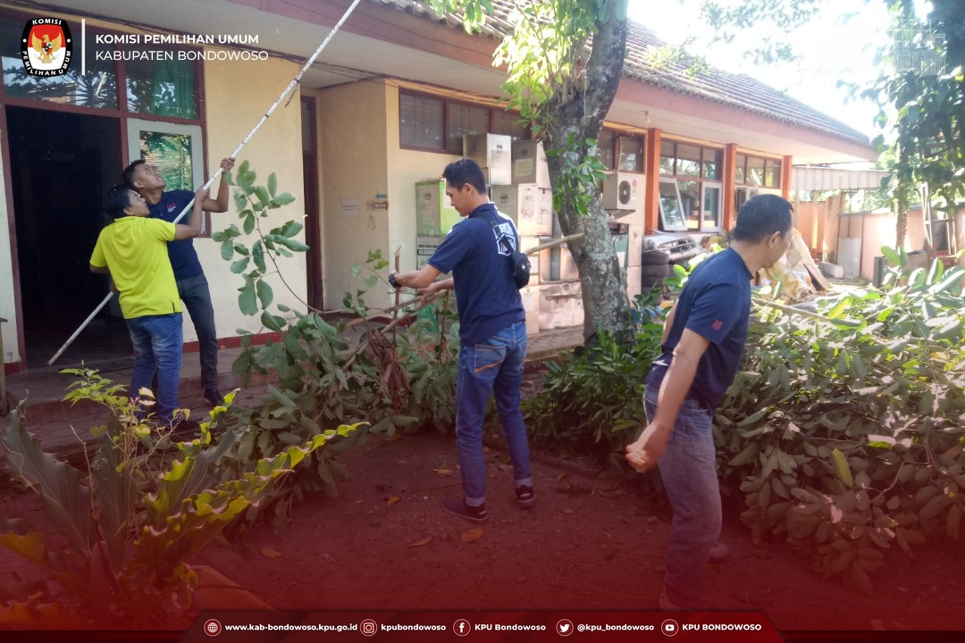 Bondowoso (01/07/2022) - KPU Bondowoso menggelar kegiatan Jumat bersih yang diisi dengan Kerja Bakti Bersama, Jum’at (01/07/2022). Kegiatan yang dilaksanakan dan bertepatan di penghujung bulan juli ini dalam rangka untuk menciptakan suasana lingkungan kerja yang nyaman, bersih dan kegiatan benar-benar dilakukan dengan suasana yang penuh antusias oleh semua staf dan pimpinan di lingkungan Sekretariat KPU Kabupaten Bondowoso. Dengan peralatan dan kelengkapan kebersihan ditambah lagi dengan parang dan gergaji semua staf langsung membersihkan halaman dan melakukan pemangkasan dahan pohon rambutan dan mangga sudah terlalau lebat yang menyebabkan daun-daun berserakan dan menumpuk dihalaman maupun di atap kantor. Sekretaris KPU Bondowoso Toidin, menyampaikan bersih-bersih ini dilakukan sebagai upaya untuk menjaga kebersihan dan kenyamanan dalam bekerja. Selain kebersihan merupakan sebagian dari iman, Beliau juga menambahkan “kita tidak perlu olahraga yang mahal, dengan jum’at bersih pun bisa menjadikan tubuh kita berkeringat dan sehat”. “Dengan adanya kegiatan jum’at bersih ini, diharapkan semua staf sekretariat KPU Kabupaten Bondowoso yang telah melaksanakan aktivitas rutin selama sepekan akan menjadikan badan kita bugar dan sehat serta mempunyai semangat kerja yang tinggi dengan adanya suasana yang baru, nyaman dan sejuk“ ujar Toidin. (daf)
