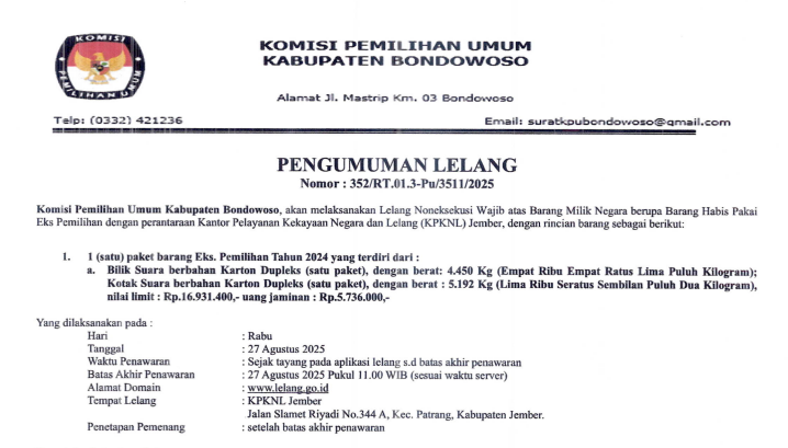 Sekretaris KPU Kabupaten Bondowoso, Toidin, menjelaskan bahwa berdasarkan Surat Keputusan Sekretaris Jenderal Komisi Pemilihan Umum Republik Indonesia Nomor : 652/SDM.01-Kpt/05/SJ/VI/2021 tentang Pengangkatan Pegawai Pemerintahan Non Pegawai Negeri Pada Sekretariat Jenderal Komisi Pemilihan Umum.