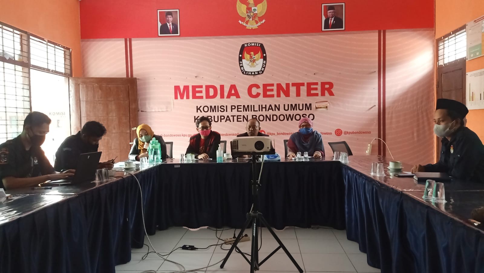 Bondowoso, senin (14/02/2022), mulai pukul 19.30 WIB sampai dengan selesai bertempat di Aula Kantor KPU Kabupaten Bondowoso bersama Forkopimda dan Partai Politik mengikuti acara nonton bersama Peluncuran Hari Pemungutan Suara Pemilu Serentak Tahun 2024 yang digelar oleh Komisi Pemilihan Umum Republik Indonesia, melalui siaran langsung kanal Youtube KPU RI, yang diikuti Instansi Pemerintah Kabupaten/Kota seluruh Indonesia, dan Anggota Partai Politik dengan mematuhi protokol Kesehatan yakni memakai masker dan jaga jarak. Hadir dalam kegiatan tersebut Forkopimda Kabupaten Bondowoso, Ketua Partai Politik se Kabupaten Bondowoso, Ketua PWI Bondowoso, Bawaslu Kabupaten Bondowoso, Ketua serta Anggota KPU Bondowoso dan Sekretariat Komisi Pemilihan Umum Kabupaten Bondowoso. Ilham Saputra (Ketua KPU RI) bersama Anggota Komisioner secara simbolis mencoblos surat suara sebagai tanda telah diluncurkannya Hari Pemungutan Suara Pemilu Serentak Tahun 2024, yakni tanggal 14 Februari 2024. Ilham menyampaikan “Dengan Peluncuran Hari Pemungutan Suara Pemilu Serentak Tahun 2024, masyarakat diharapkan sadar dan tahu terhadap pelaksanaan Pemilu yang akan dilaksanakan pada 14 Februari 2024 mendatang. Sementara itu, Ketua KPU Bondowoso, Junaidi, dengan diluncurkannya Hari Pemungutan Suara Pemilu Serentak Tahun 2024 ini, ia berharap seluruh elemen masyarakat dapat ikut andil dalam menyukseskan pagelaran pesta demokrasi 5 (lima) tahunan ini. “Dengan ditetapkannya Keputusan KPU RI Nomor 21 Tahun 2022 dan Peluncuran Hari Pemungutan Suara Pemilu Tahun 2024 Tanggal 14 Februari 2024, harapan kami seluruh Stakeholder dan semua elemen masyarakat juga mendukung dan ikut menyuseskan Pemilu Serentak Tahun 2024. ”ujar Junaidi. Kemudian acara nonton bersama Peluncuran Hari Pemungutan Suara Pemilu Serentak Tahun 2024 ditutup dengan acara sesi foto bersama.(Dav)