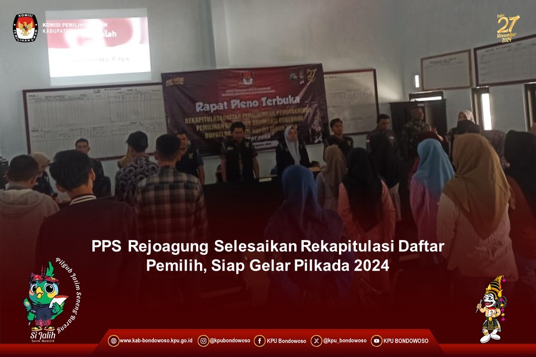 Bondowoso (01/08/2024) - Panitia Pemungutan Suara (PPS) Desa Rejoagung telah berhasil menyelesaikan rapat pleno terbuka untuk rekapitulasi Daftar Pemilih Hasil Pemutakhiran (DPHP) pada Kamis, 1 Agustus 2024. Rapat ini merupakan bagian dari persiapan penyelenggaraan Pemilihan Kepala Daerah (Pilkada) serentak tahun 2024. Ketua Panitia Pemilihan Kecamatan (PPK) Sumberwringin, Ahmad Subaili, menjelaskan bahwa rapat pleno serupa juga digelar serentak di 18 desa lainnya di Kecamatan Sumberwringin pada tanggal 1 dan 2 Agustus. "Tujuan dari rapat pleno ini adalah untuk memastikan daftar pemilih yang akan digunakan dalam Pilkada sudah final dan akurat," ujar Ahmad. Dalam rapat pleno di Desa Rejoagung, dihadiri oleh berbagai pihak terkait, termasuk petugas Pemutakhiran Data Pemilih (Pantarlih), pengawas kelurahan/desa, serta perwakilan dari partai politik. Adhita Putri Ayunantha, Ketua PPS Rejoagung, menyampaikan bahwa proses rekapitulasi DPHP telah dilakukan sesuai dengan peraturan yang berlaku. Selama proses rekapitulasi, PPS Desa Rejoagung menghadapi beberapa tantangan, seperti [sebutkan tantangan yang dihadapi, misalnya: perbedaan data antara PPS dan Pantarlih, atau kendala teknis]. Namun, semua kendala tersebut berhasil diatasi sehingga proses rekapitulasi dapat diselesaikan dengan baik. Dengan selesainya rekapitulasi DPHP, PPS Desa Rejoagung bersama dengan PPK Kecamatan Sumberwringin siap untuk melaksanakan tahapan selanjutnya dalam penyelenggaraan Pilkada 2024. "Kami berharap seluruh masyarakat dapat berpartisipasi aktif dalam pesta demokrasi ini," pungkas Adhita. (PPK Sumberwringin)