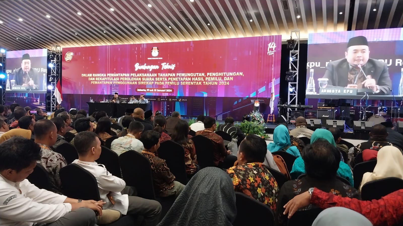 Jakarta (20/01/2024) – Komisi Pemilihan Umum (KPU) Kabupaten Bondowoso mengikuti Kegiatan Bimbingan Teknis Dalam Rangka Pemantapan Pelaksanaan Tahapan Pemungutan, Penghitungan, dan Rekapitulasi Perolehan Suara Serta Penetapan Hasil Pemilu dan Pemanfaatan Penggunaan Sirekap pada Pemilu Serentak Tahun 2024, 18-21 Januari 2024. Kegiatan dilaksanakan di Grand Sahid Hotel Jakarta. Kegiatan yang diselenggarakan oleh KPU RI bersama dengan KPU Provinsi dan KPU Kabupaten/Kota Se-Indonesia dengan melibatkan Ketua, Anggota KPU Divisi Teknis, Kabag Tekmas dan Kasubbag Teknis serta Admin dan Operator KPU Provinsi dan KPU Kabupaten/Kota. Hadir mewakili KPU Kabupaten Bondowoso adalah Junaidi, Heniwati dan Moh Ilyas PA. Kegiatan dibuka secara langsung oleh Ketua KPU RI, Hasyim Asyari. Dalam sambutannya, Hasyim menyampaikan beberapa poin penting terkait persiapan akhir menjelang hari pemungutan tanggal 14 Februari 2024. Beberapa hal penting diantaranya adalah jumlah cetak surat suara, logistik, dan beberapa hal isu yang beredar di masyarakat. Selanjutnya, kegiatan dipimpin oleh Anggota KPU RI, Idham Haliq, dalam sesi arahan pimpinan. Hari kedua dan ketiga diisi dengan simulasi sirekap untuk kelas sekretariat dan kelas substansi untuk kelas komisioner. Simulasi sirekap yang dimaksud adalah sirekap web dan sirekap mobile. (mipa).