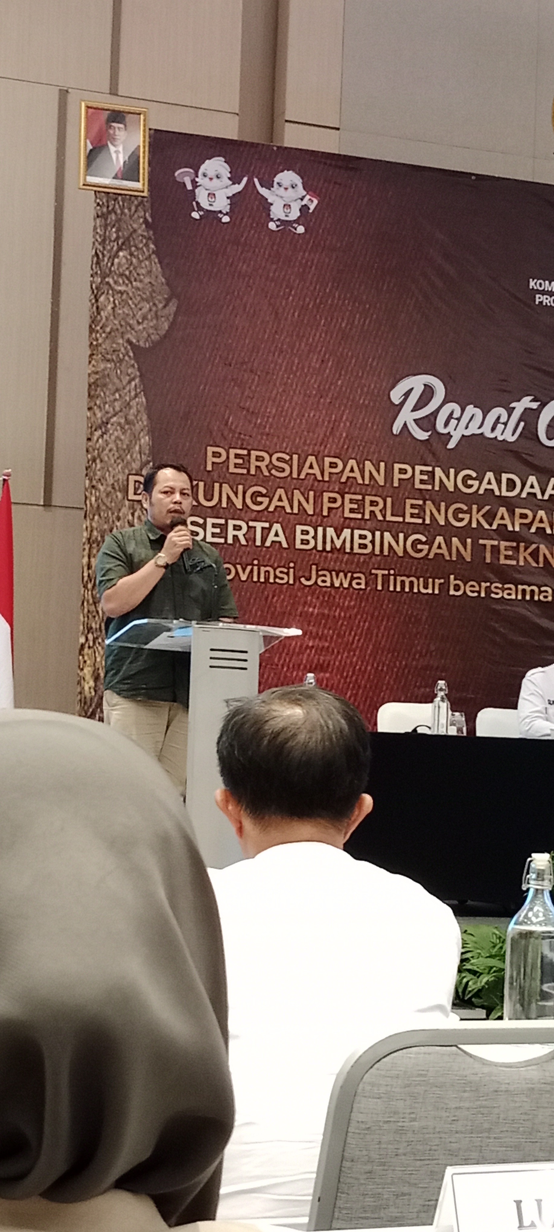 Surabaya - Komisi Pemilihan Umum Kabupaten Bondowoso menghadiri Rapat Koordinasi Persiapan Pengadaan dan Pencermatan Data Dukung Perlengkapan Pemungutan Suara Lainnya serta Bimbingan Teknis Silog Pemilu Tahun 2024 yang dilaksanakan di HARRIS Hotel & Convention Bundaran Satelit Surabaya, Jl. Mayjen HR. Muhammad No. 2A, Surabaya dari tanggal 5 sampai 7 Oktober 2023. Dasar dilaksanakannya Rapat Koordinasi tersebut untuk samakan persepsi mengenai pengelolaan logistik Pemilu 2024 antara KPU Provinsi Jawa Timur dan KPU Kabupaten/Kota se Jawa Timur. Kegiatan Dihadiri oleh Choirul Anam, Ketua KPU Provinsi Jawa Timur, dalam sambutannya ia berharap Proses Pemilu Tahun 2024 dan pengadaan logistik dapat berjalan dengan lancar, aman dan kondusif. Menurutnya logistik merupakan bagian penting dalam pemilu, " Logistik menjadi salah satu kunci suksesnya Pemilu Tahun 2024", tuturnya Dalam Forum yang sama, Miftahur Rozaq, Divisi Perencanaan dan Logistik KPU Jawa Timur, menyampaikan dalam menghadapai Pemilu Tahun 2024, KPU Kabupaten/Kota diharapkan terus meningkatkan pemahaman regulasi, mulai dari perencanaan, Pengadaan, Pengelolaan sampai dengan pendistribusiannya. Lebih lanjut, Sekretaris KPU Provinsi Jawa Timur, Nanik Karsini dalam kesempatan ini menegaskan kepada 38 KPU Kabupaten/Kota yang hadir untuk mempersiapkan segala sesuatu sebelum logistik didatangkan. Dari KPU Kabupaten Bondowoso dihadiri oleh Ketua, Junaidi, Sekretaris,Toidin, Pejabat Pembuat Komitmen, Kasubbag Keuangan, Umum dan Logistik sekaligus Admin Silog, Adiets Nurhasanah dan Operator Silog, Mulyadi. Sebagai informasi, dalam acara yang bakal digelar selama tiga hari ini selain Anam, Rozaq, Nanik, Suharto, Kabag Keuangan, Umum dan Logistik, hadir juga dari KPU Jatim Kasubbag Umum dan Logistik, Dini Utaminingsih dan para Staf Subbag terkait pada Rundown kegiatan dihari pertama. (Dy)