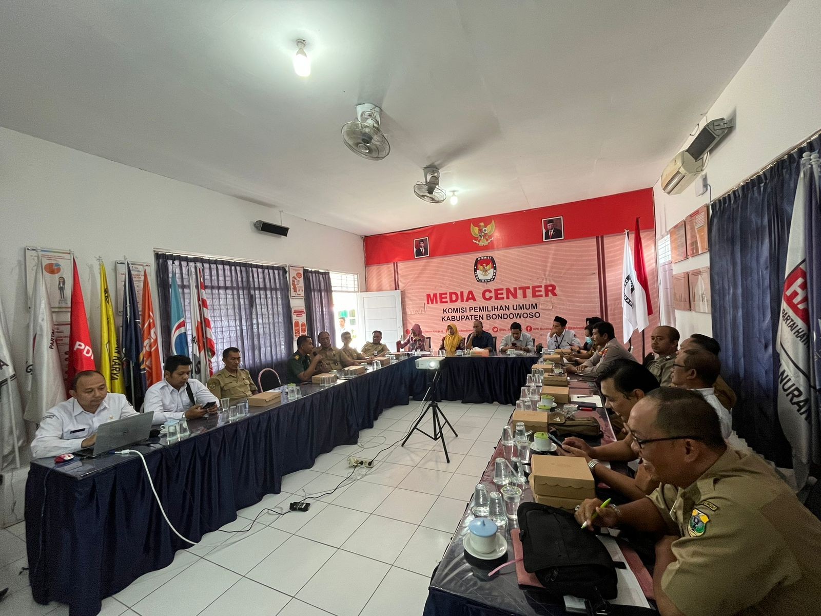 Bondowoso (28/08/2023) – Komisi Pemilihan Umum (KPU) Kabupaten Bondowoso melaksanakan Rapat Koordinasi Persiapan Kegiatan Kirab Pemilu Tahun 2024 dengan instansi terkait, Senin (28/08/2023). Kegiatan dilaksanakan di Aula KPU Kabupaten Bondowoso dengan dihadiri oleh instansi-instansi terkait seperti Bawaslu, Polres, Kodim, Satpol PP, Dinas Lingkungan Hidup, Dinas Kominfo, Kantor Kesbangpol, Bagian umum Sekretariat Daerah, Bagian Prokopim Sekretariat Daerah, Cabang Dinas Pendidikan Provinsi Jawa Timur, Dinas Perhubungan dan Dinas Koperasi, Perindustrian dan Perdagangan. Dalam sambutannya, Ketua KPU Kabupaten Bondowoso, Junaidi, menyampaikan bahwa KPU Bondowoso akan melaksanakan Kirab Pemilu 2024 yang tentunya membutuhkan bantuan semua pihak. “KPU Bondowoso akan punya gawe, tentunya support dari seluruh elemen akan memberikan kemudahan-kemudahan dalam pelaksanaan Kirab Pemilu Tahun 2024”. Junaidi juga menjelaskan bahwa Kirab Pemilu Tahun 2024 tidak hanya dilaksanakan di KPU Bondowoso, tetapi merupakan program nasional dari KPU RI. sementara itu, Anggota KPU Divisi Sosdiklih, SDM dan Parmas menyampaikan bahwa jalur Kirab Pemilu Tahun 2024 yang akan masuk di KPU Bondowoso merupakan jalur VI yang dimulai dari NTT. Saat ini Kirab Pemilu Tahun 2024 masih berada di Provinsi Bali. Selepas penjelasan dari pihak KPU Bondowoso, masing-masing instansi menyampaikan masukan dan saran kepada KPU Bondowoso agar pelaksanaan berjalan dengan lancar. Misalnya dari pihak Kepolisian dan Kodim, menyampaikan bagaimana alternatif-alternatif pengamanan kegiatan sejak hari pertama sampai dengan hari terakhir. Demikian juga dengan Satpol PP dan Dishub menyampaikan skenario-skenario penataan pedagang serta tempat parkir ketika event serah terima di Alun-alun. Sementara itu, pihak Dinas Lingkungan Hidup sebagai pengelola alun-alun yang akan digunakan sebagai tempat kegiatan serah terima kirab, juga menyampaikan banyak hal terkait dengan perijinan, lokasi serta beberapa hal detail teknis penataan lokasi. Hal ini mengingat pada saat hari kegiatan dilaksanakan bertepatan dengan kegiatan car free day. (mipa)