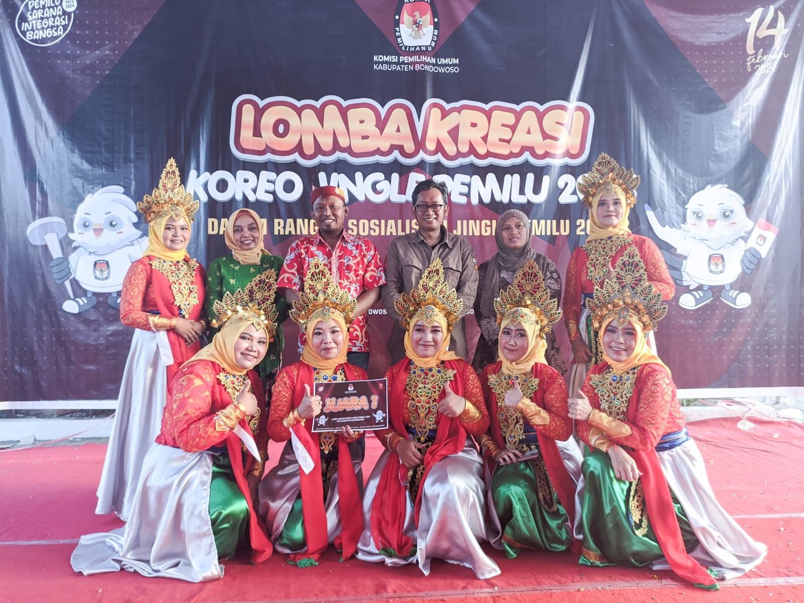 Bondowoso (20/05/2023) – Spektakuler, itulah kira-kira kata yang tepat untuk menggambarkan situasi pelaksanaan penilaian Lomba Kreasi Koreo Jingle Pemilu 2024 yang diselenggarakan oleh KPU Kabupaten Bondowoso, Sabtu (20/o5/2023). Bertempat di Halaman Kantor KPU Kabupaten Bondowoso, antusias peserta sungguh luar biasa, 16 tim dari 16 kecamatan berusaha untuk menampilkan kreasi terbaik mereka. Kegiatan yang dilaksanakan sebagai bagian dalam mempersiapkan Kirab Pemilu 2024 ini telah dimulai sejak 21 Maret 2023. Sebanyak 23 tim dari masing-masing kecamatan mengirimkan video koreo mereka untuk dinilai yang selanjutnya 15 besar tampil dalam kegiatan penilaian Lomba Kreasi Koreo Jingle Pemilu 2024. Sementara itu, 1 tim dengan jumlah like terbanyak di youtube akan ditetapkan sebagai juara favorit. Kegiatan penilaian Lomba Kreasi Koreo Jingle Pemilu 2024 dibuka oleh Ketua KPU Kabupaten Bondowso, Junaidi. Dalam sambutannya, Junaidi mengapresiasi seluruh peserta yang telah mengeluarkan daya dan upaya serta biaya dalam pelaksanaan lomba, ini membuktikan bahwa penyelenggara pemilu di tingkat kecamatan dan desa/kelurahan secara serius melaksanakan kegiatan Pemilu Tahun 2024. Sebelumnya, Sekretaris KPU Bondowoso, Toidin, selain melaporkan kegiatan, juga menyampaikan ucapan terima kasih kepada seluruh peserta yang telah mengikuti kegiatan lomba dengan baik. Selanjutnya, tidak kalah spesialnya adalah sambutan pengarahan dari Sekretaris KPU Provinsi Jawa Timur, Nanik Karsini, yang hadir melalui zoom. Selain memberikan arahan teknis, Nanik Karsini juga mengapresiasi kegiatan yang diselenggarakan oleh KPU Kabupaten Bondowoso. “Kegiatan semacam ini merupakan kegiatan yang baru pertama diselenggarakan di Jawa Timur, belum ada daerah lain yang menyelenggarakannya. Oleh karena itu saya berharap agar terus muncul kreatifitas-kreatifitas lainnya”, lanjut Nanik Karsini. Sunfi Fahlawati, sebagai Divisi Sosdiklih, SDM dan Parmas, yang membidangi kegiatan penilaian Lomba Kreasi Koreo Jingle Pemilu 2024, juga menyampaikan arahan kepada para peserta yang hadir. Sunfi menyampaikan secara teknis beberapa arahan dan kriteria penilaian lomba yang digunakan oleh Juri untuk melakukan penilaian. Di Akhir acara, Ketua KPU Kabupaten Bondowoso menyampaikan pengumuman pemenang sebagai berikut, Pemenang Pertama adalah Kecamatan Grujukan, Pemenang Kedua Kecamatan Pujer, dan Pemenang Ketiga adalah Kecamatan Prajekan, sedangkan Pemenang Favorit adalah Kecamatan Maesan. (mulyadi)