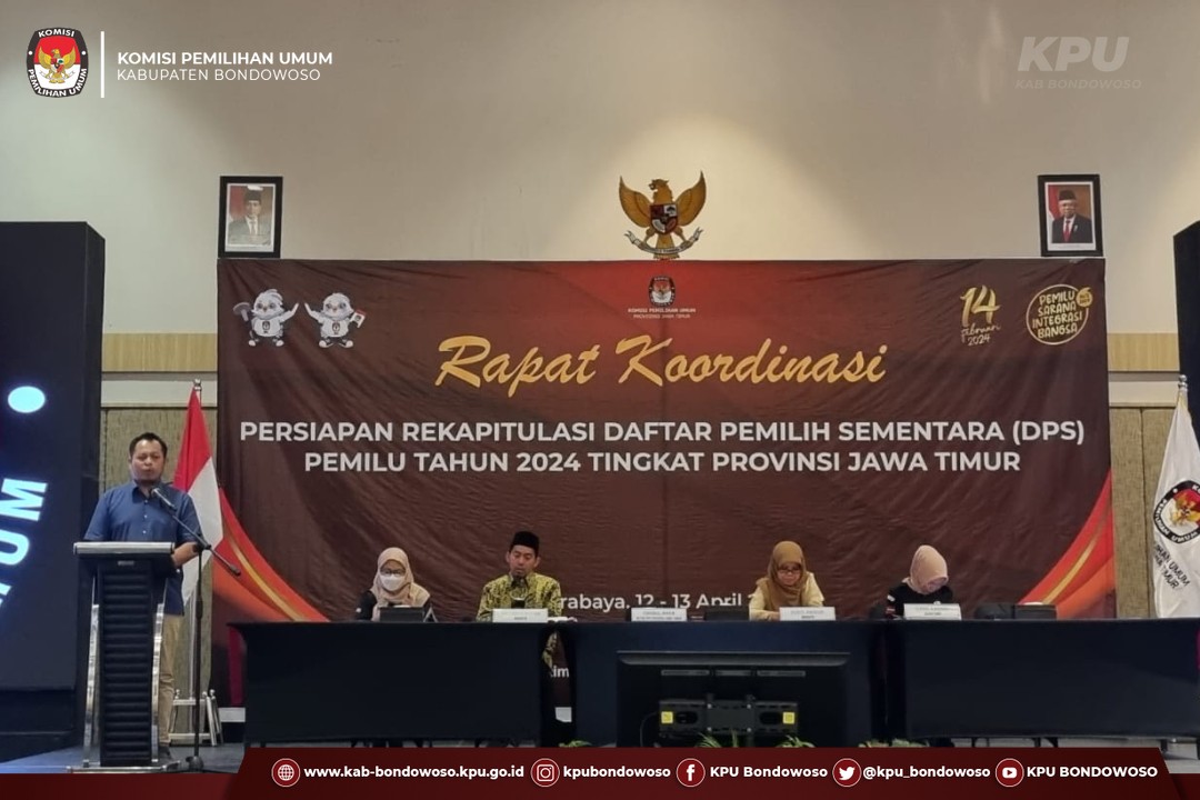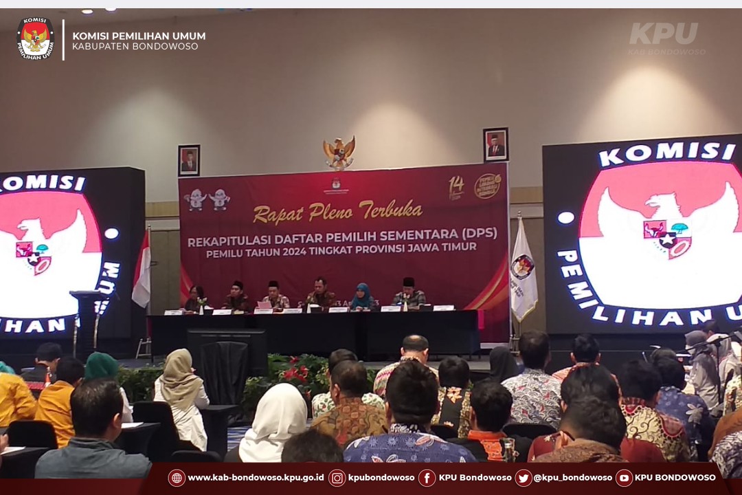 Surabaya - Kamis, (13/04) Komisi Pemilihan Umum (KPU) Provinsi Jawa Timur telah menetapkan sebanyak 31.570.088 masyarakat sebagai Daftar Pemilih Sementara (DPS) Pemilihan Umum (Pemilu) yang digelar secara serentak pada tahun 2024. Rapat digelar di Novotel Samator Surabaya. Rapat Rekapitulaso DPS dibuka Oleh Ketua KPU Provinsi Jawa Timur Chairul Anam dan dilanjutkan dipimpin oleh Divisi Data dan Informasi KPU Jawa Timur Nurul Amalia. Adapun Hasil rekapitulasi DPS Pemilu Tahun 2024 Tingkat Provinsi Jawa Timur yakni jumlah DPS 31.570.088 pemilih. Terdiri dari laki-laki sebanyak 15.594.407 pemilih dan perempuan 15.975.681 pemilih, dengan jumlah Tempat Pemungutan Suara (TPS) 120.548. Berita Acara Rekapitulasi DPS Jawa Timur untuk Pemilu tahun 2024 kemudian diserahkan kepada jajaran partai politik dan stakeholder terkait. Proses rekapitulisasi DPS melibatkan 38 KPU kabupaten dan kota se-Jawa Timur. Mereka berasal dari Divisi Perencanaan, Data dan Informasi (Rendatin), Kasubbag Rendatin, serta operator Sistem Informasi Data Pemilih (Sidalih). Tak hanya itu saja, KPU Jawa Timur menghadirkan perwakilan partai politik dan sejumlah stakeholder terkait, seperti Badan Pengawas Pemilu (Bawaslu), Dinas Pemberdayaan Perempuan, Perlindungan Anak dan Kependudukan (DP3AK), Kementerian Agama (Kemenag), Dinas Sosial (Dinsos), Badan Kesatuan Bangsa dan Politik (Bakesbangpol), dan Biro Pemerintahan dan Otonomi Daerah. Kemudian, Kementerian Hukum dan Hak Asasi Manusia (Kemenkumham) Kepala Kepolisian Daerah (Kapolda) Jawa Timur dan Panglima Kodam (Pangdam) V Brawijaya. Acara berjalan dengan lancar dan ditutup dengan ramah tamah dan buka bersama.