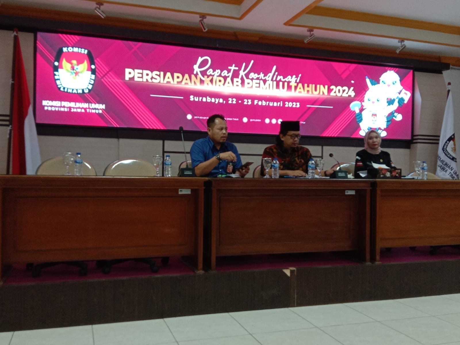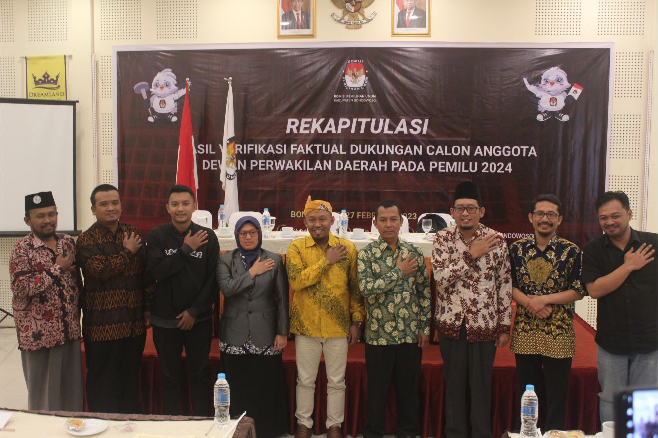 Bondowoso (27/02/2023) - Komisi Pemilihan Umum (KPU) Kabupaten Bondowoso melaksanakan salah satu tahap dalam tahapan Pencalonan Anggota DPD pada Pemilu Tahun 2024, yakni Rekapitulasi Hasil Verifikasi Faktual Kesatu Dukungan Calon Anggota Dewan Perwakilan Daerah (DPD) dalam Pemilu Tajun 2024, Senin (27/02/2023). Bertempat di Hotel Dreamland, kegiatan rekapitulasi hasil verifikasi faktual kesatu dilaksanakan dengan mengundang Penghubung/LO calon anggota DPD dan Panitia Pemilihan Kecamatan (PPK) se-Kabupaten Bondowoso. Kegiatan rekapitulasi dibuka oleh Ketua KPU Kabupaten Bondowoso, Junaidi. Dalam sambutan pembuka, Junaidi menjelaskan bahwa terdapat beberapa kendala di lapangam dalam proses verifikasi faktual kesatu. Diantaranya adalah kendala lapangan dan pendukung yang tidak ditemui di lapangan. Junaidi juga menyampaikan harapan agar Penghubung/LO selektif dalam mencari dukungan, sebisa mungkin agar para penyelenggara tidak dicatut sebagai pendukung, karena sampai dengan saat ini masih ada saja penyelenggara yang dicatut sebagai pendukung. Kegiatan rekapitulasi selanjutnya dipimpin secara langsung oleh Anggota KPU Kabupaten Bondowoso, Heniwati. Kegiatan rekapitulasi diawali dengan penjelasan kilas balik tahapan verifikasi dari mulai verifikasi administrasi hingga verifikasi faktual kesatu. Heniwati juga menjelaskan situasi lapangan di daerah Kecamatan Sempol yang terkendala oleh bencana alam berupa banjir bandang. Selanjutnya adalah penyampaian hasil verifikasi yang dibacakan secara langsung oleh masing-masing anggota PPK. Setelah semua PPK membacakan hasil verifikasi, dilanjutkan dengan pembacaan Rekapitulasi Hasil Verifikasi Faktual Kesatu Dukungan Calon Anggota DPD dalam Pemilu Tahun 2024. Sebagaimana diketahui bahwa di Kabupaten Bondowoso terdapat 14 Calon Anggota DPD yang pendukungnya diverifikasi faktual kesatu. (mipa)
