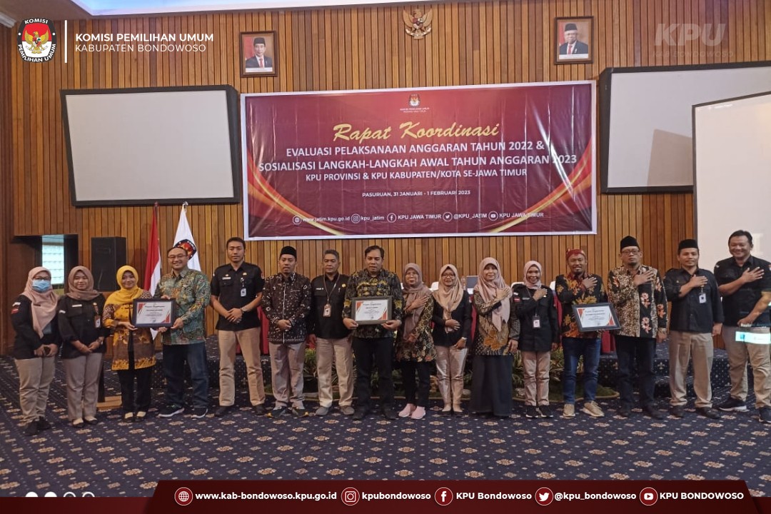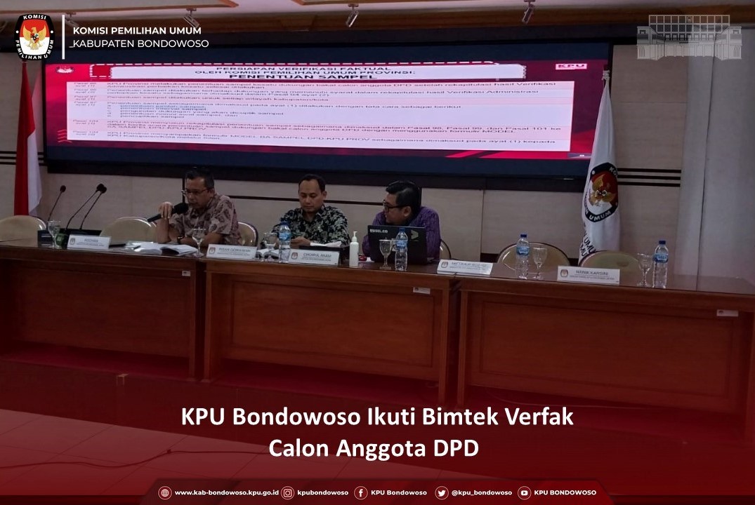 Surabaya (02/02/2023) – Komisi Pemilihan Umum (KPU) Kabupaten Bondowoso mengikuti Kegiatan Rapat Koordinasi dan Persiapan Rekapitulasi Hasil Verifikasi Adminsitrasi Dukungan Minimal Pemilih Perbaikan Kesatu dan Bimbingan Teknis Verifikasi Faktual Pencalonan Perseorangan Anggota DPD Pada Pemilihan Umum Tahun 2024 Bersama KPU Kabupaten/Kota yang diselenggarakan oleh KPU Provinsi Jawa Timur, Kamis (02/02/2023). Kegiatan yang dilaksanakan di Aula KPU Provinsi Jawa Timur tersebut dilaksanakan dalam rangka mempersiapkan Rapat Pleno Rekapitulasi Hasil Verifikasi Administrasi Dukungan Minimal Pemilih Perbaikan Kesatu Pencalonan Perseorangan Anggota DPD Pada Pemilihan Umum Tahun 2024 Tingkat Provinsi Jawa Timur. Kegiatan diikuti oleh Komisioner KPU Kabupaten/Kota Divisi Teknis Penyelenggaraan, Kasubbag Teknis Penyelenggaraan Pemilu, Partisipasi dan Hubungan Masyarakat, serta Operator Silon DPD. Mewakili KPU Kabupaten Bondowoso adalah Heniwati selaku komisioner divisi teknis penyelenggaraan, Mohammad Ilyas Purwo Agomo selaku Kasubbag Tekmas dan Mohamad Saparullah selaku operator Silon DPD. Kegiatan dibuka oleh Ketua KPU Provinsi Jawa Timur, Choirul Anam. Dalam sambutan pembukaan, Choirul Anam menyampaikan bahwa kegiatan tahapan yang dilaksanakan hari ini merupakan kegiatan yang hampir sama dengan kegiatan verifikasi partai politik, akan tetapi tentunya berbeda karena Peraturan KPU berbeda. Choirul Anam juga berpesan bahwa bagian teknis juga harus mengikuti proses tahapan yang lain meskipun berbarengan dengan tahapan bagian teknis sendiri. Selepas penyampaian sambutan dan pembukaan secara resmi, kegiatan dilanjutkan dengan pengarahan umum yang dilaksanakan oleh Anggota KPU Provinsi Jawa Timur serta Sekretaris KPU Provinsi Jawa Timur. Selanjutnya kegiatan diisi dengan proses pencermatan berita acara hasil verifikasi adminsitrasi perbaikan kesatu yang dilaksanakan oleh masing-masing kabupaten/kota. (mipa)