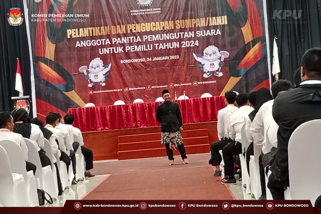 Bondowoso 24/01/2023, Komisi Pemilihan umum Kabupaten Bondowoso melantik Anggota Panitia Pemungutan Suara (PPS) Se-Kabupaten Bondowoso pada Selasa 24 Januari 2023.
