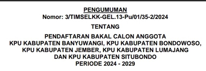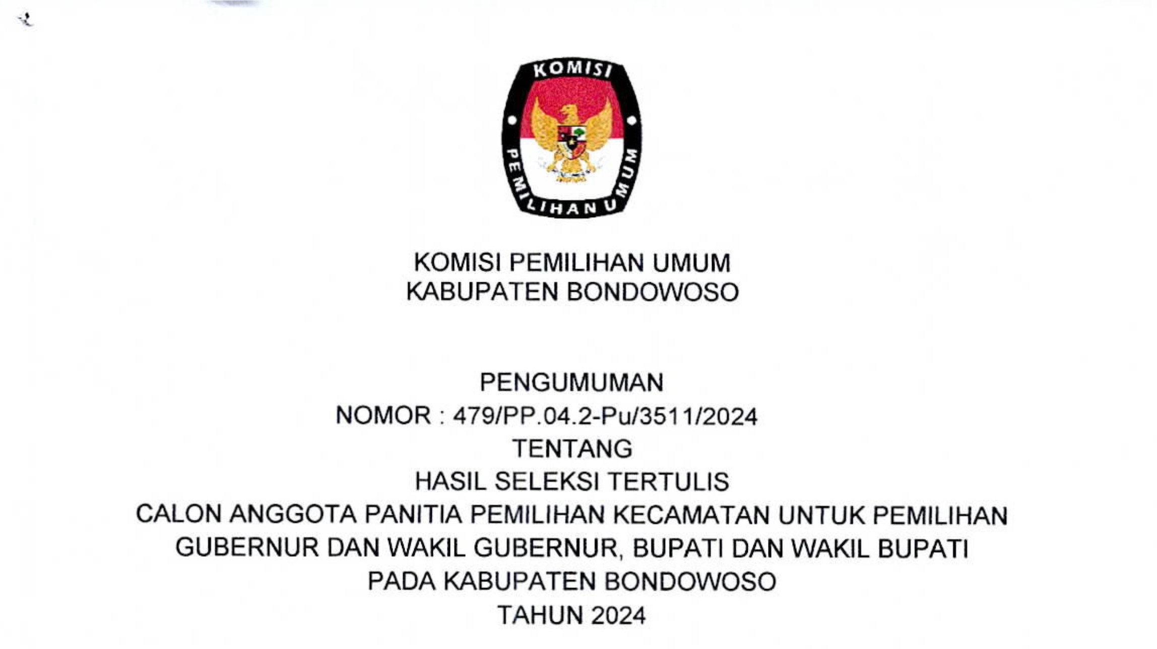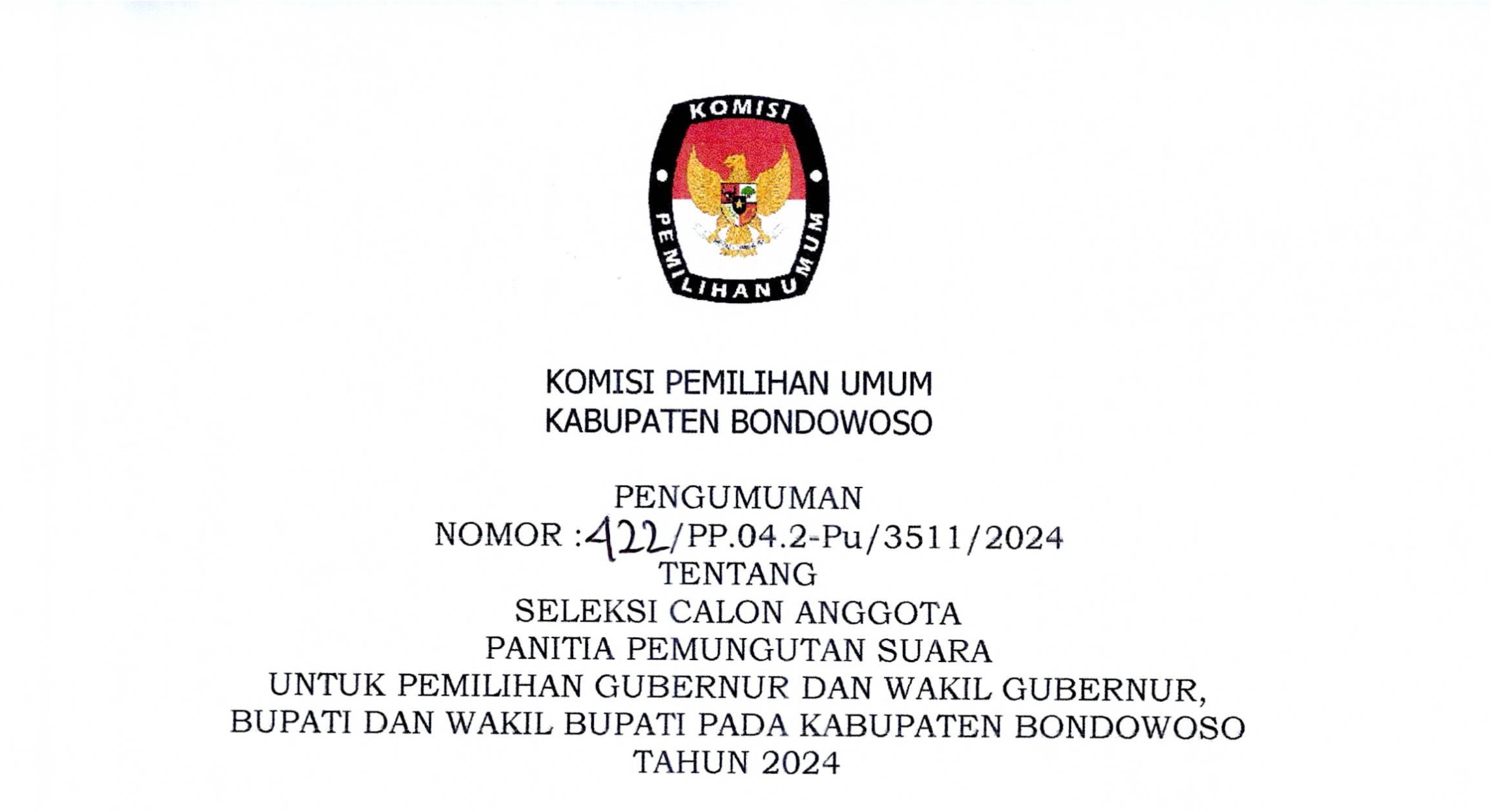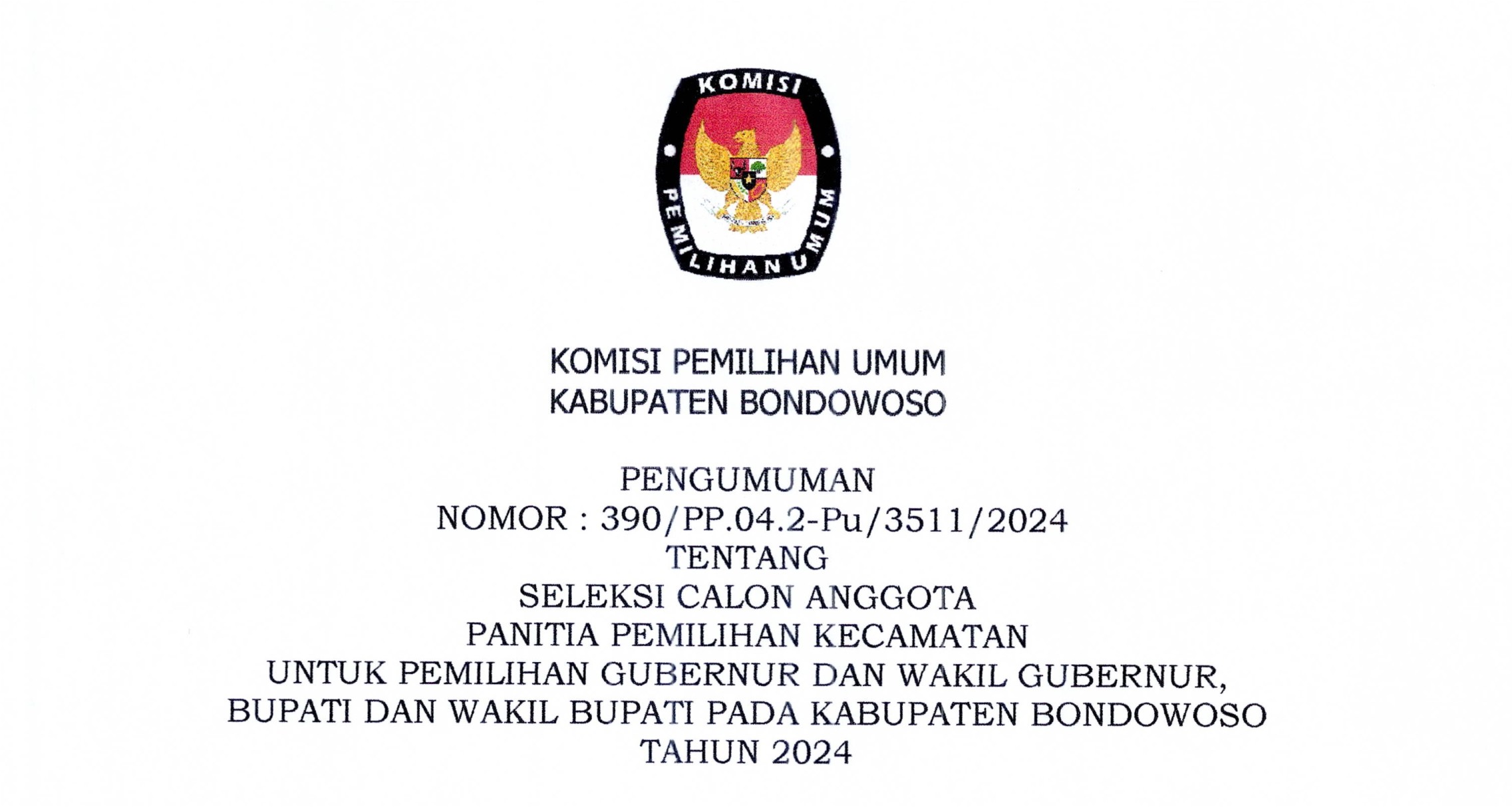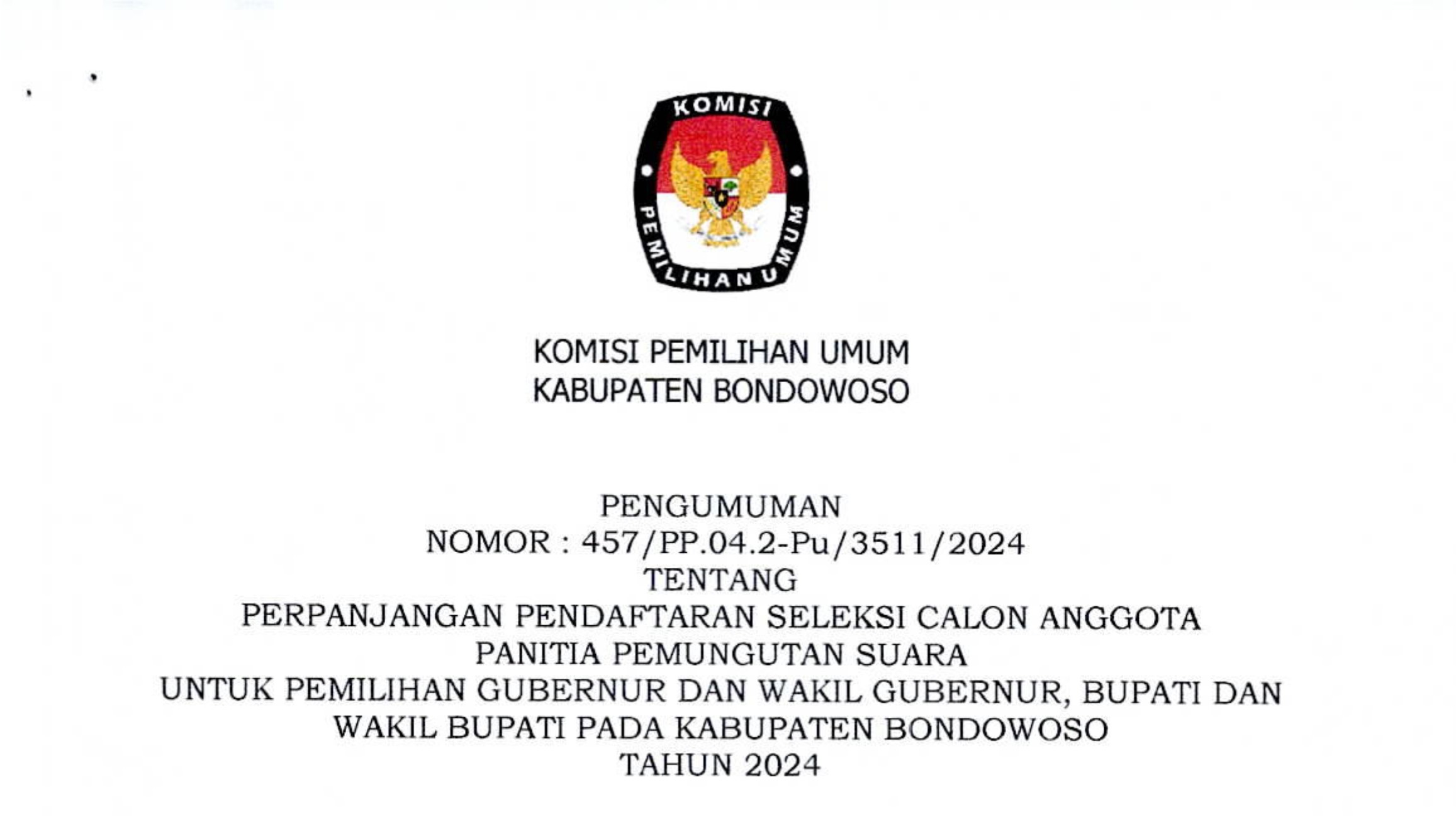 Pendaftaran PPK dan PPS untuk Pemilihan Bupati dan Wakil Bupati Kabupaten Bondowoso serta Pemilihan Gubernur dan Wakil Gubernur Jawa Timur Tahun 2024, telah dibuka.
