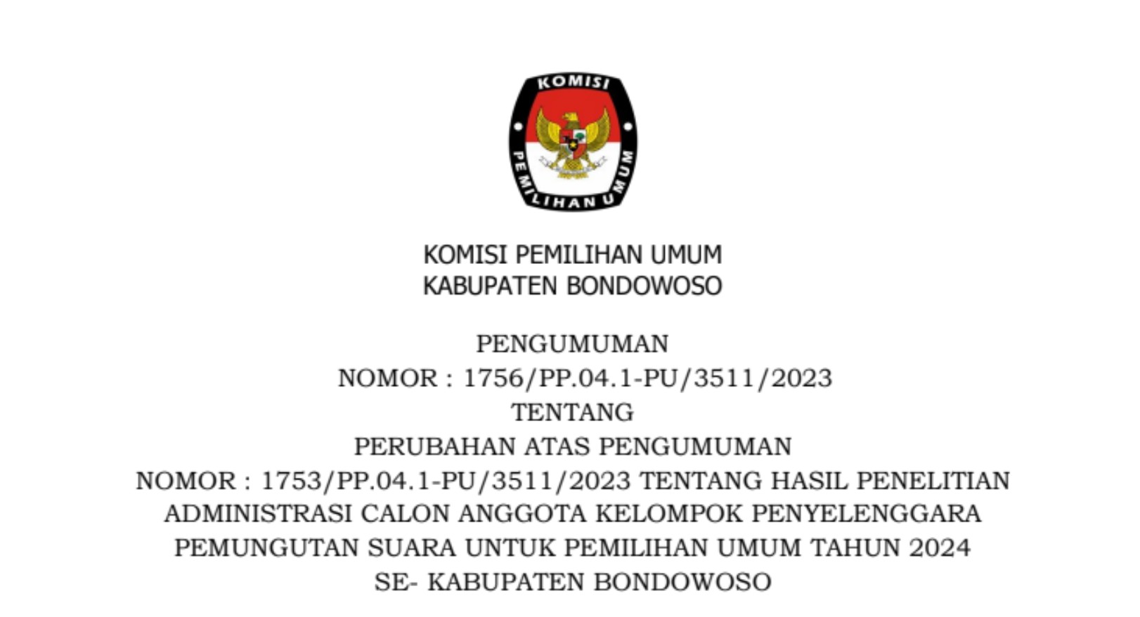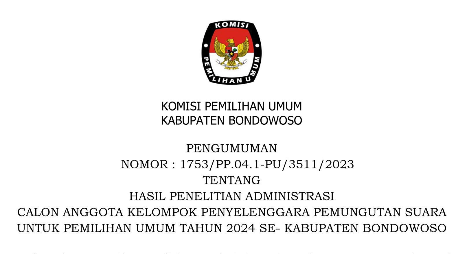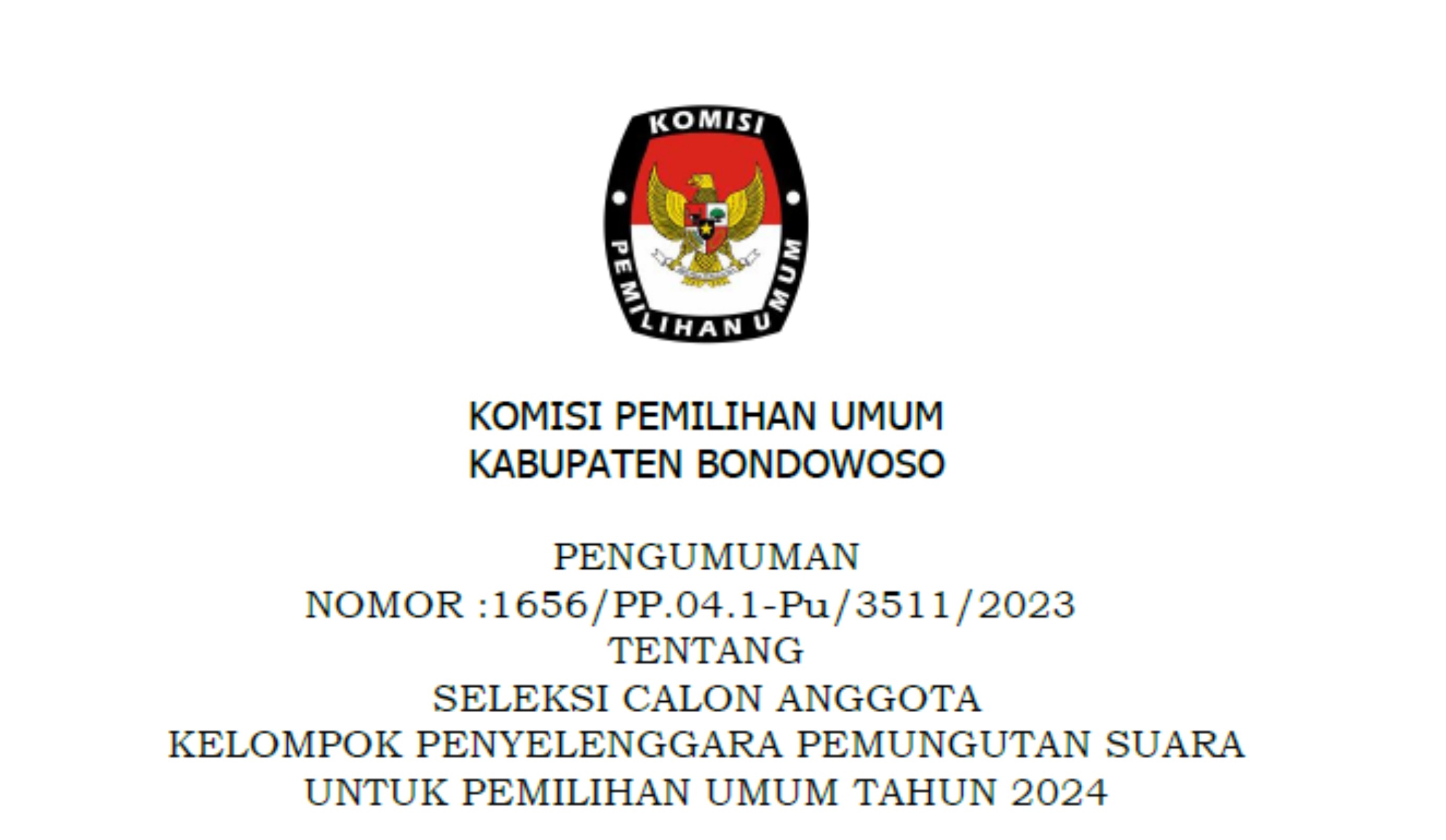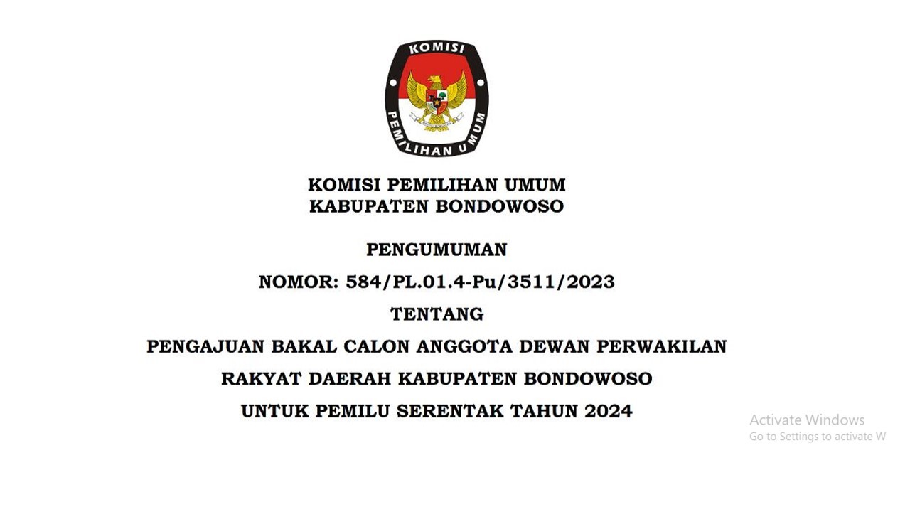 Komisi Pemilihan Umum Kabupaten Bondowoso membuka penerimaan pengajuan bakal calon anggota Dewan Perwakilan Rakyat Daerah (DPRD) Kabupaten Bondowoso untuk Pemilu Serentak Tahun 2024 melalui Partai Politik Peserta Pemilu pada kepengurusan tingkat Kabupaten dengan ketentuan sebagai berikut: